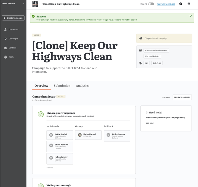 If you would like to create multiple version of the same action or if your theme and targets are the same as a previous campaign save yourself some time by cloning it